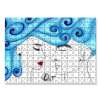 Pressed cardboard puzzle with glossy finish consisting of 192 pieces and measuring 40x28.8 cm. Each piece is about 3x4 cm in size and about 0.2 cm thick.